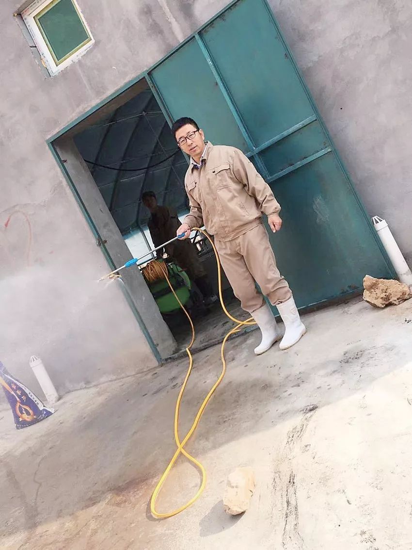 白建林正对厂房进行消毒。